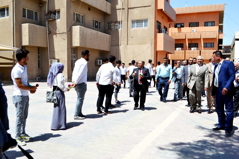 واستقبل الاستاذ عماد تقي بالزهور قدمت له من قبل طلبته الاوفياء قبل دخوله لقاعة الاحتفال المكتضة بمحبيه من زملاءه التدريسيين والموظفين الذين استقبلوه بالتصفيق الحار.