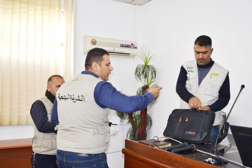 The department of computer hosted the manager of community policing brigadier –general Khalid Falaf Al-Muhana and groups of this police from ministry of Interior to hold awareness seminar of electronic extortion and electronic accounts assurance)for the students and the lecturers of the college.In this seminar ,Asst.prof.Dr.Ebtisam Hussein Faidh and the lecturer Dr.Mohammed Kamal Nusaif participated in this lecture