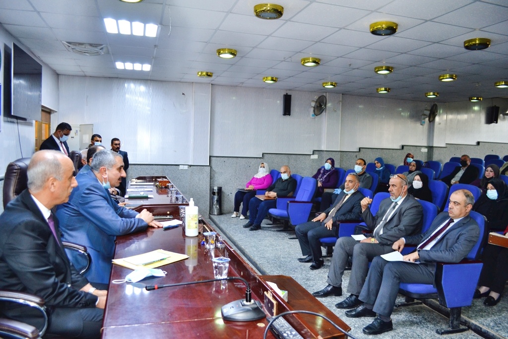 بعد ذلك قام السيد رئيس الجامعة ومساعديه بالاجتماع بعدد من تدريسيي قسم الكيمياء في الكلية بحضور عميد الكلية و معاونيه ورئيس القسم للتباحث في شؤون القسم واليات الارتقاء بمستوى بحوث تدريسييه الى مصاف البحوث العالمية على اثر حصول العديد من تدريسيي القسم على عدة براءات اختراع تخدم سوق العمل.