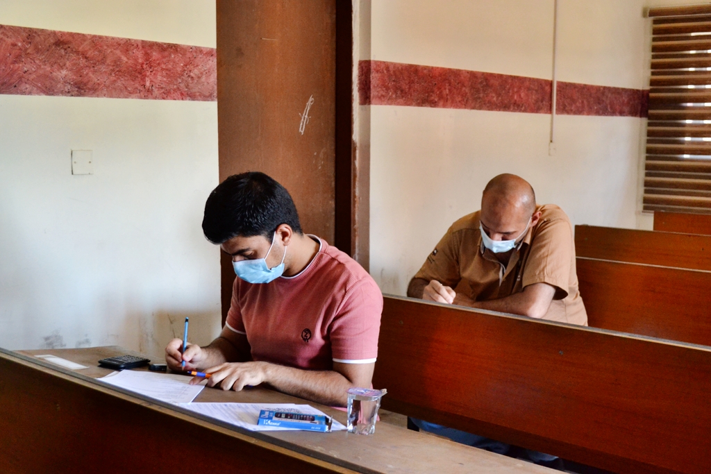 وتفقدت عمادة الكلية القاعات الامتحانية و جميع متطلبات نجاح العملية الامتحانية ابتداءا من تجهيرز متطلبات اداء الامتحان من القاعات المكيفة و مياء الشرب ومواد التعقيم والتباعد الصحي وانتهاءات بتوفير اماكن مناسبة و معزولة لعمل لجان التصحيح و التدقيق.