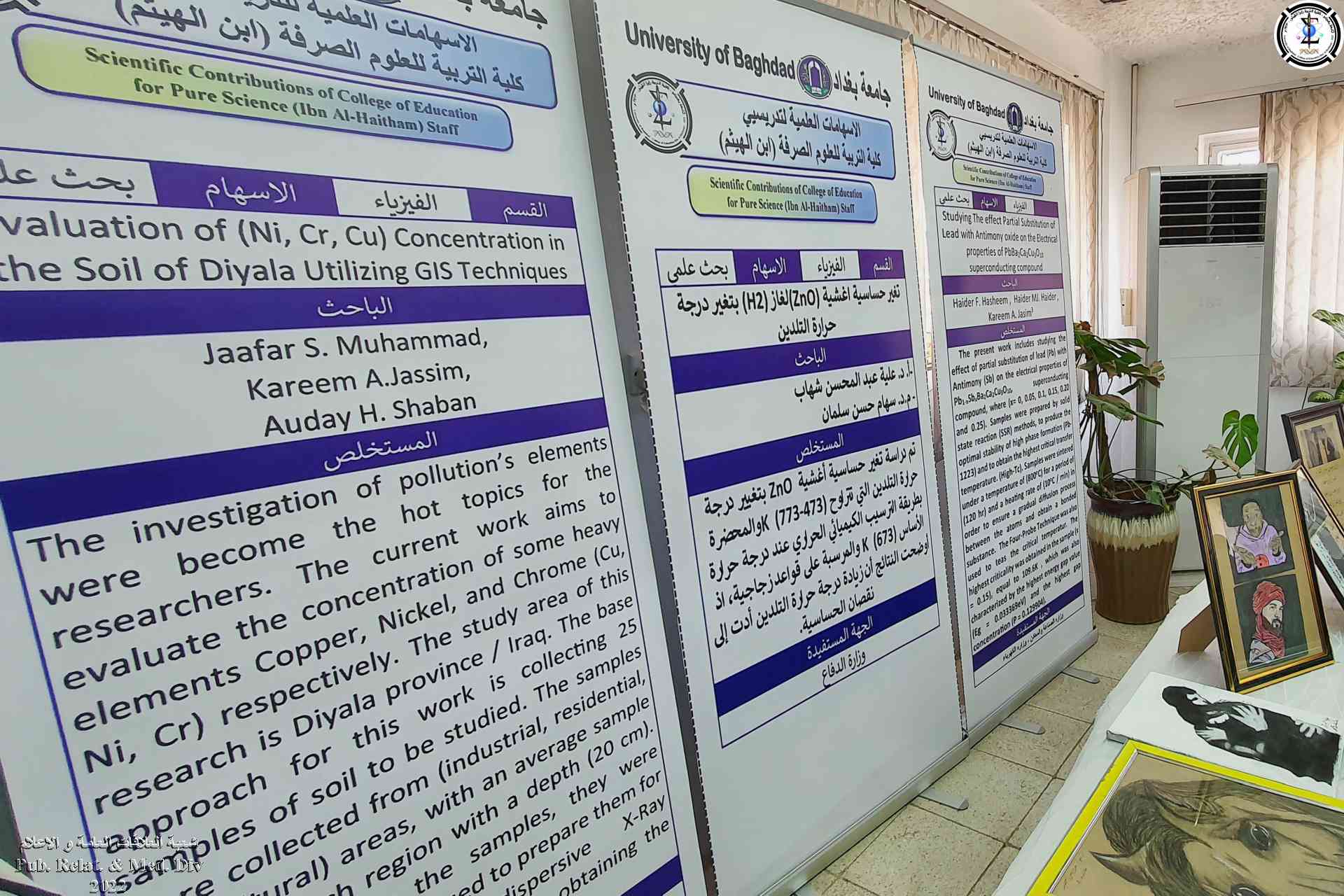 نظم قسم الفيزياء في كلية التربية للعلوم الصرفة (ابن الهيثم) معرض الابداع و التميزللنتاجات العلمية لتدريسيي و طلبة القسم على قاعة القسم بحضور عميد الكلية أ.د. فراس عبد الحميد عبد اللطيف و معاونه للشؤون العلمية أ.د. حسن احمد حسن وللشؤون الادارية أ.د. حسن كامل رسن ورئيسة القسم أ.م.د. سميرة احمد ابراهيم وعدد كبير من تدريسيي و طلبة القسم.