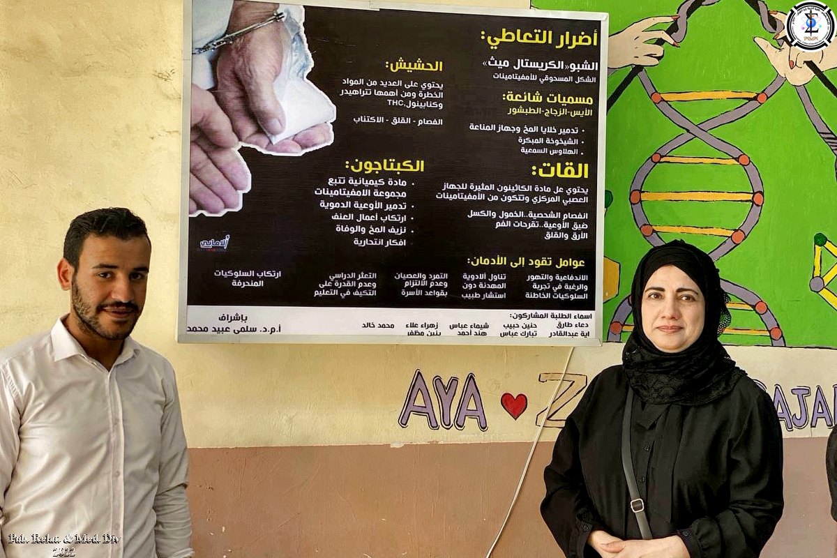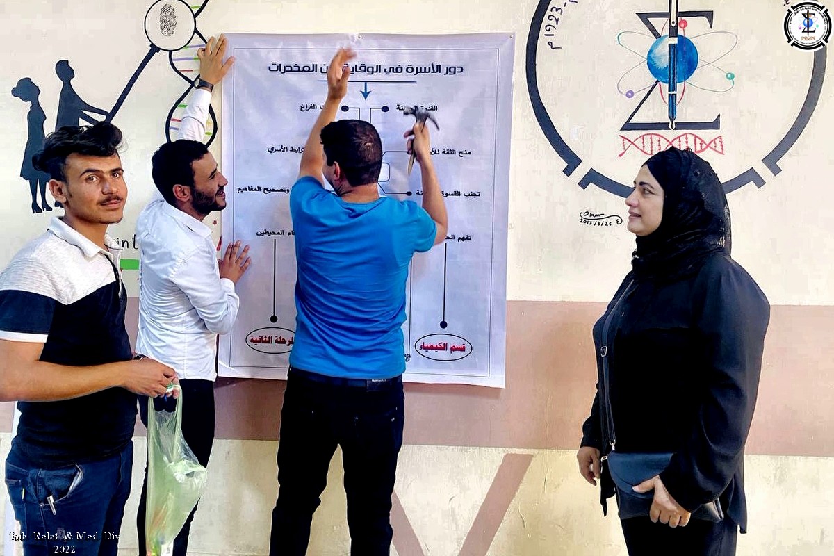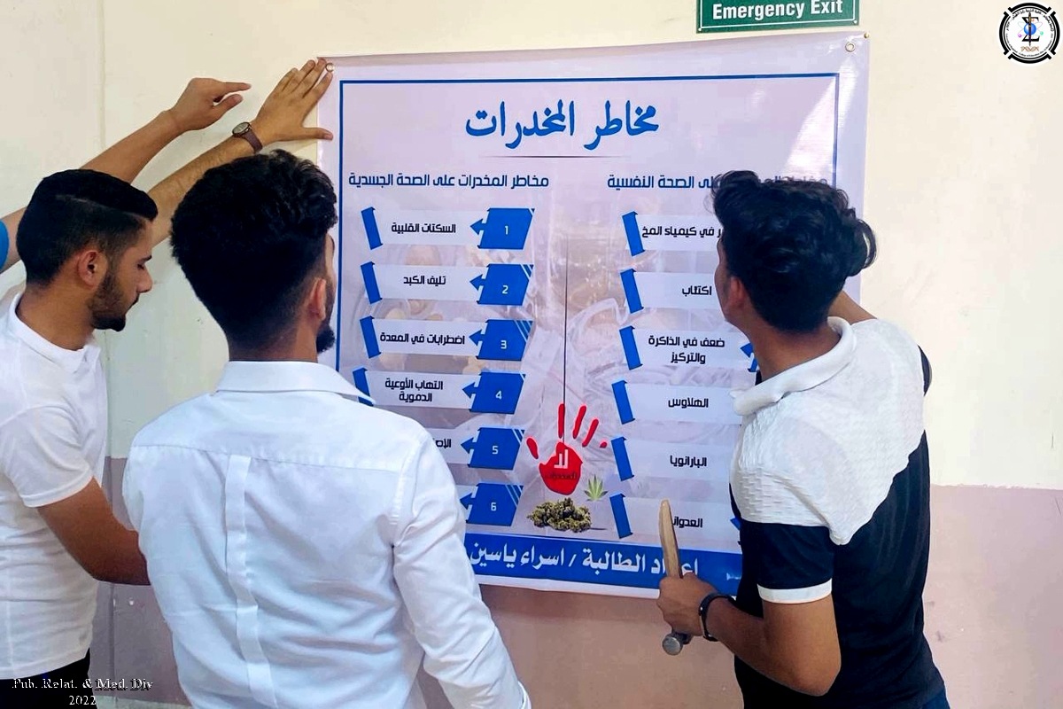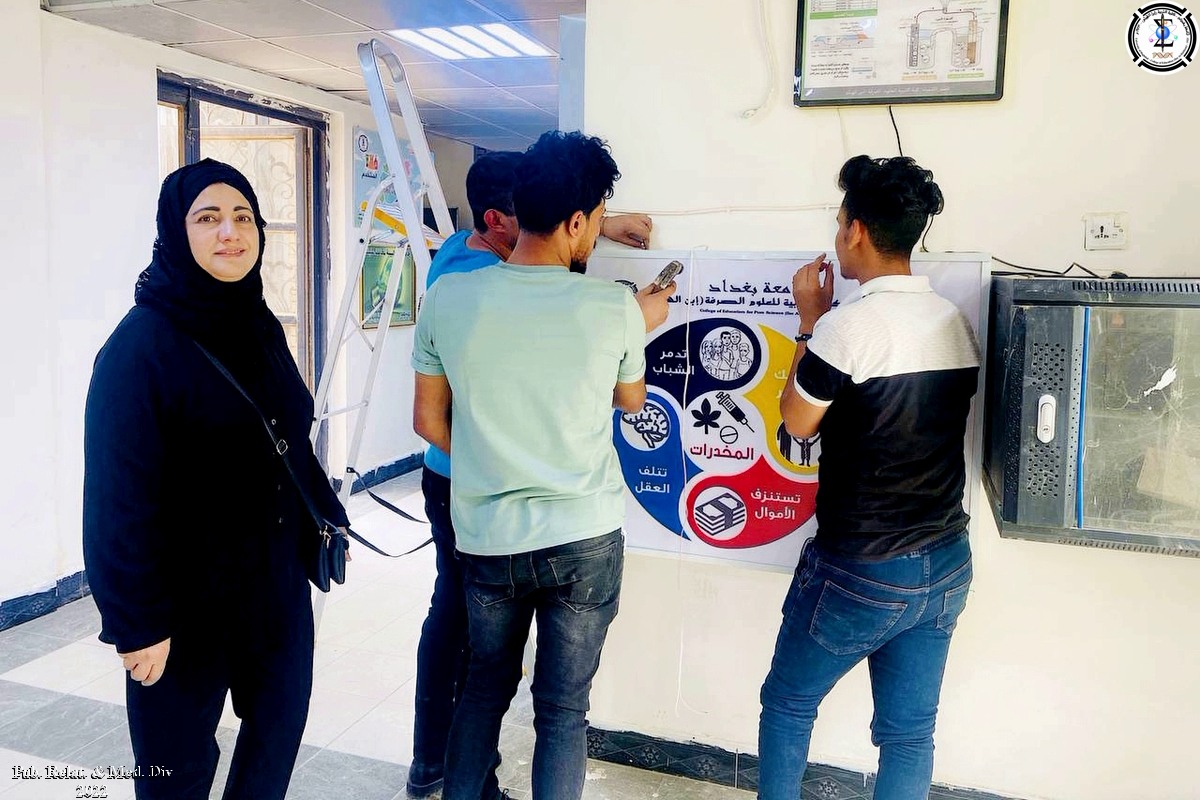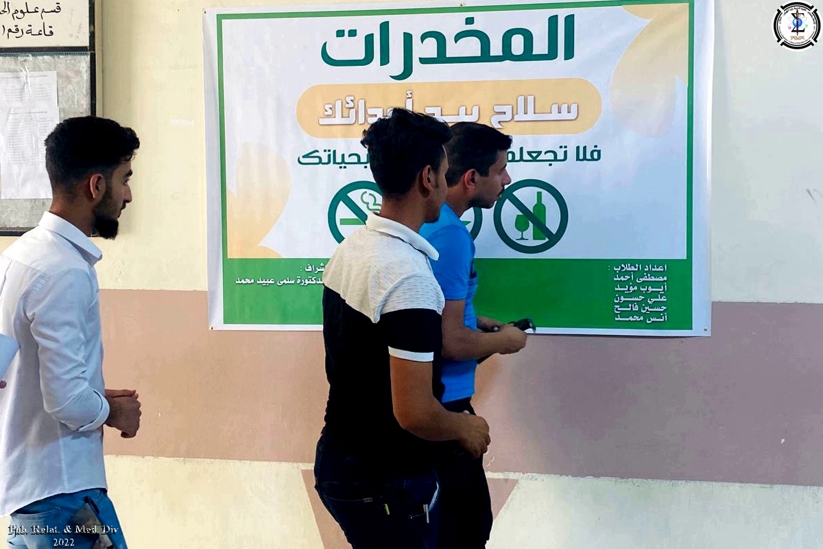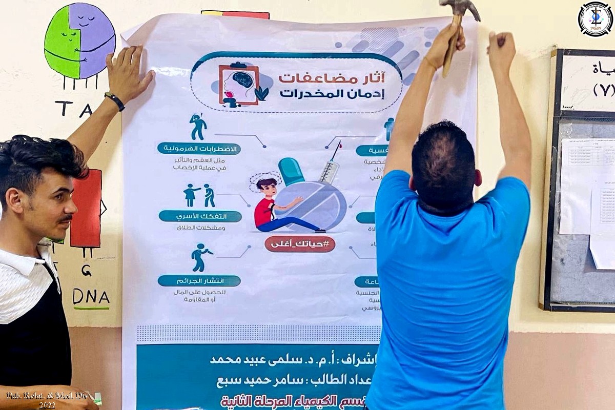 The teaching staff in the Department of Chemistry (Prof. Dr. Salma Obaid Muhammad) organized an awareness campaign to combat drug abuse and spread the consequences of drug abuse by holding awareness and educational seminars for college students, in addition to publishing the explanatory posters