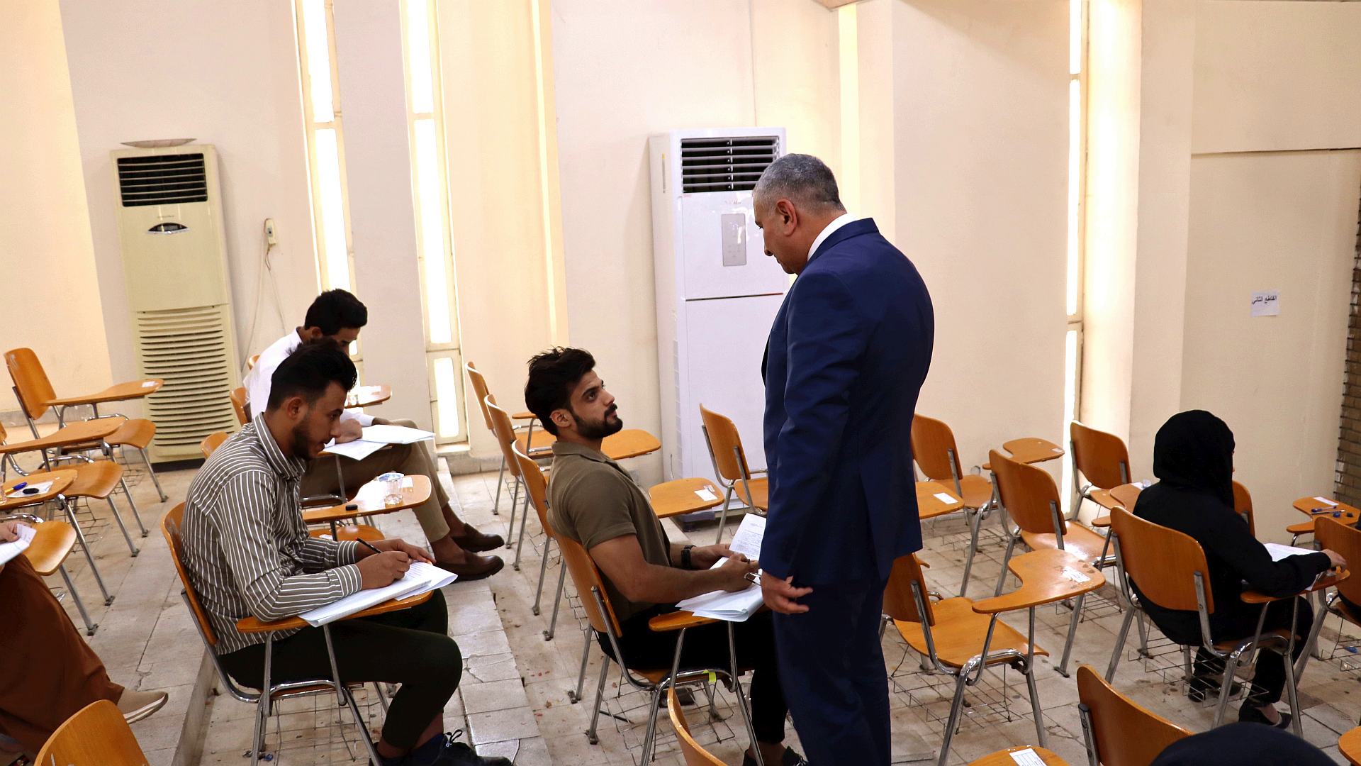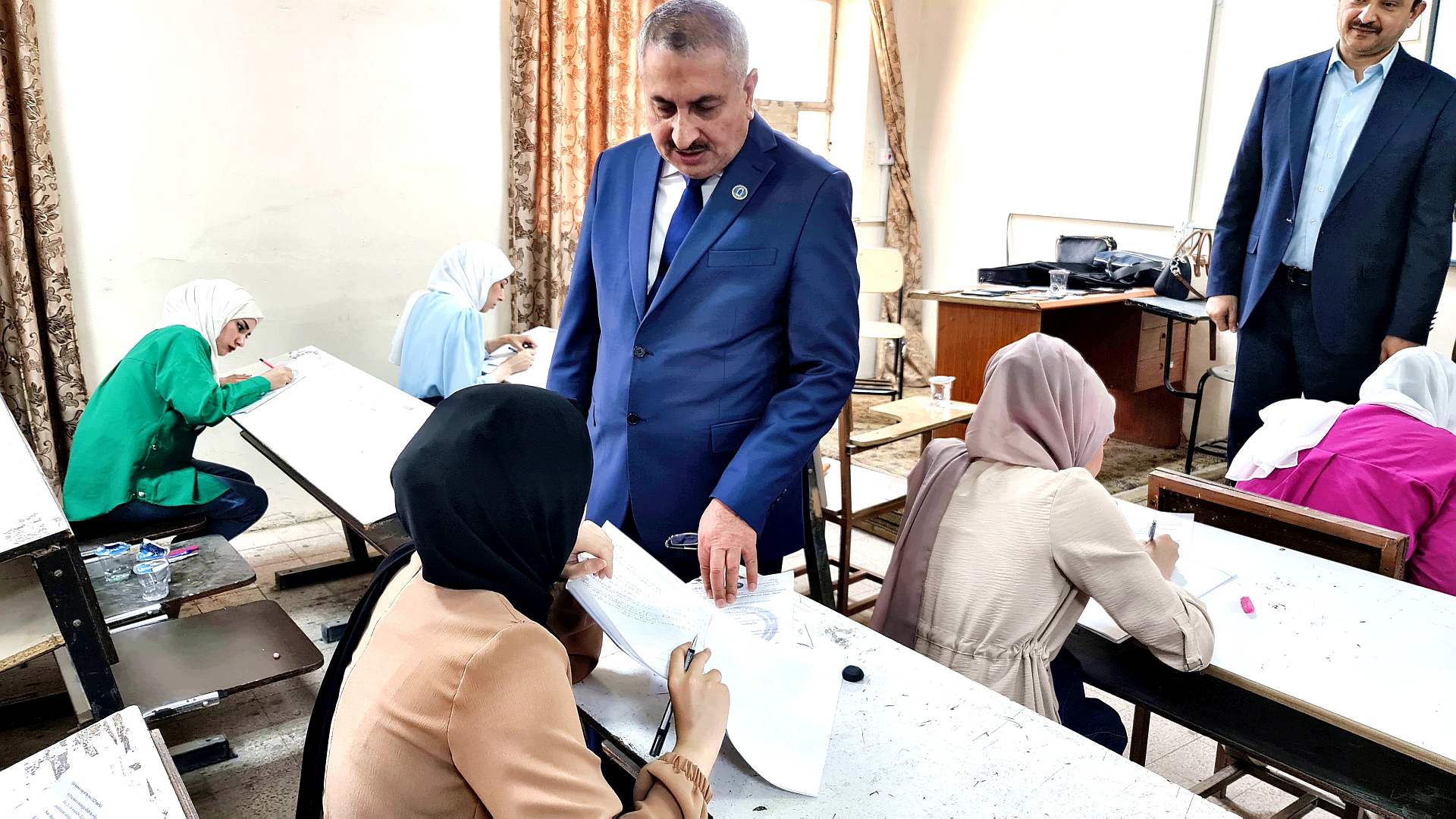 واستفسر رئيس الجامعة اثناء تفقده القاعات الامتحانية و ابنائه الطلبة ، عن طبيعة الاسئلة الامتحانية ومستوى تغطيتها للمادة العلمية المعطات خلال العام الدراسي اضافة الى درجات السعي السنوي للطلبة اضافة الى الخدمات المقدمة للطلبة الممتحنين ، كما اطلع السيد رئيس الجامعة على عمل اللجان الامتحانية وتطبيقها للتعليمات الامتحانية واكد على ضرورة الالتزام بها بما يضمن زيادة الدقة و سرعة الانجاز.