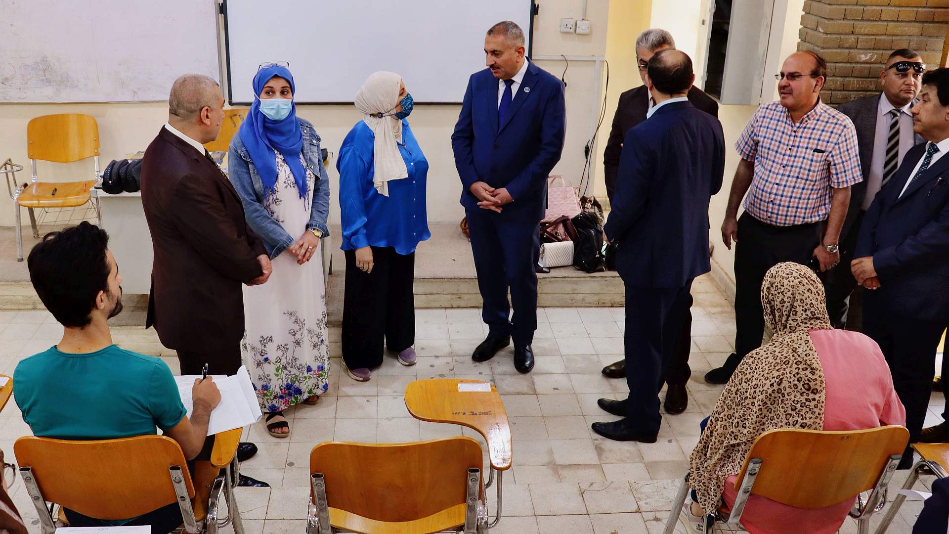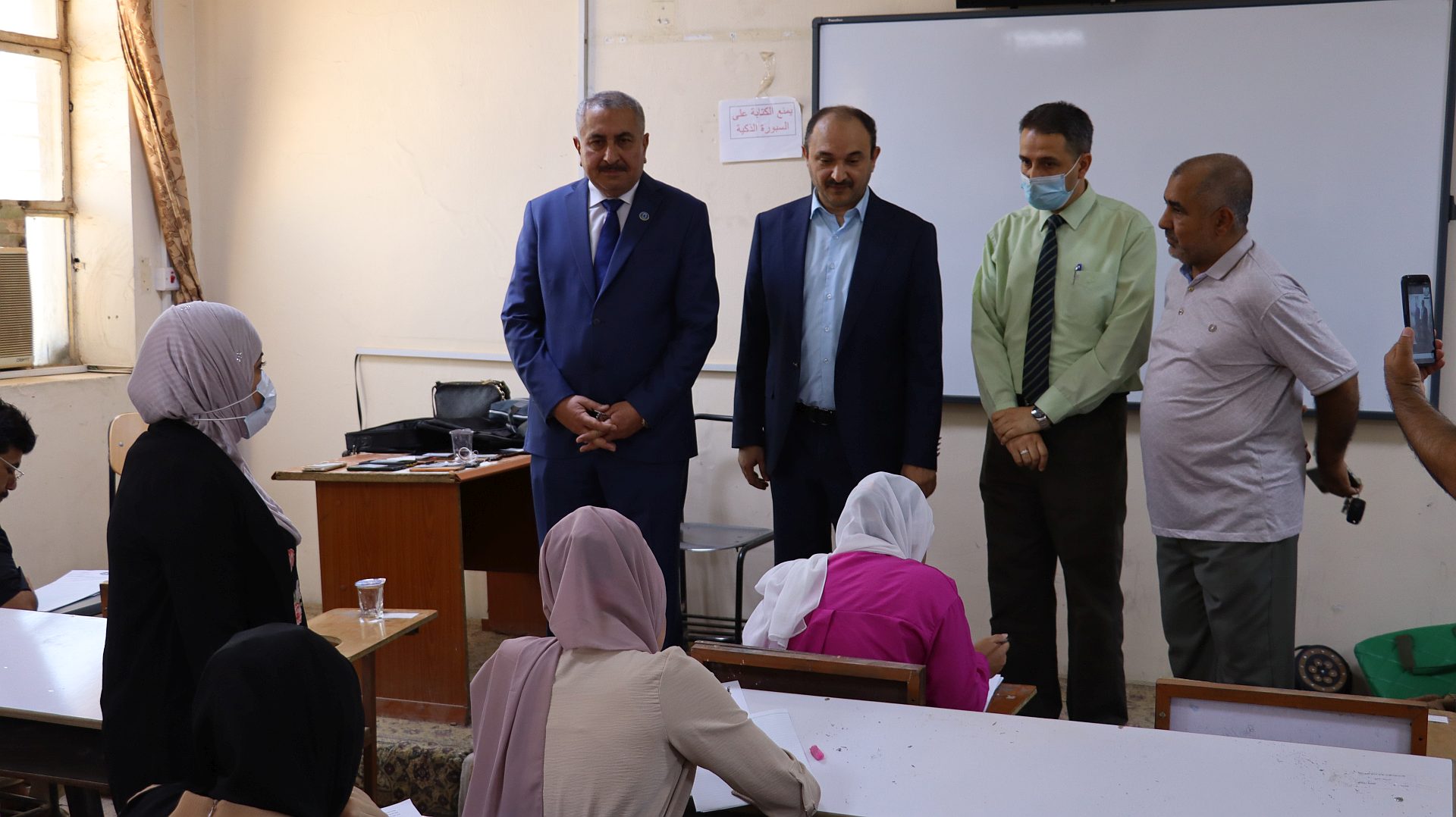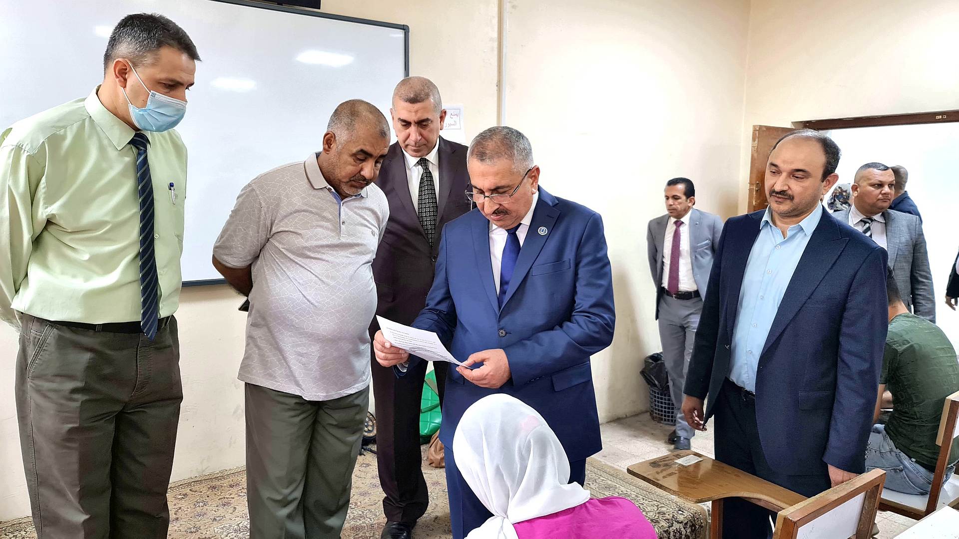 زار كليتنا صباح هذا اليوم السيد رئيس جامعة بغداد أ.د. منير حميد السعدي يرافقه مساعده للشؤون العلمية أ.د. مروان عبد الحميد عاشور و مدير مركز ابن سينا للتعليم الالكتروني أ.م.د. محمد صادق ، لتفقد سير الامتحانات النهائية و عمل اللجان الامتحانية اذ كان في استقباله عميد الكلية (أ.د. فراس عبد الحميد عبد اللطيف ) و معاوناه للشؤون العلمية (أ.د. حسن احمد حسن) وللشؤون الادارية (حسن كامل رسن) اضافة الى رؤساء الاقسام العلمية .