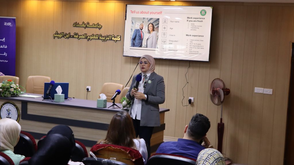 تهدف ورشة العمل الى التعريف بالبرنامج التدريبي الذي يستهدف الشباب المقبلين على التخرج في الجامعات العراقية في بغداد. ويهدف هذا البرنامج إلى تزويدهم بالمهارات اللازمة للانخراط في سوق العمل بعد التخرج و تعزيز فرص حصولهم على الوظائف من خلال ورش عمل متخصصة تتالف من ثلاثة محاور هي مهارات العمل الناعمة, مهارات اللغة الانكليزية للاعمال و طريقة إنشاء واستخدام حساب ..LinkedInيسعى البرنامج إلى تقديم أدوات ومعرفة تساعد الشباب على تطوير مهاراتهم الشخصية والمهنية.