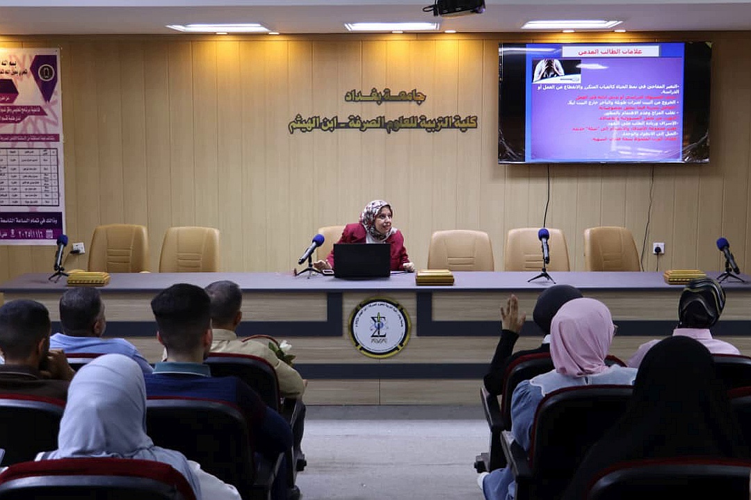 ضمن فعاليات الاسبوع العراقي لمكافحة المخدرات، نظمت وحدة الارشاد النفسي الجامعي في كلية التربية للعلوم الصرفة – ابن الهيثم ورشة عمل توعوية للطلبة بعنوان: ( رفع وعي الطلبة بمخاطر المخدرات عبر البرامج الاكاديمية )حاضر فيها التدريسية في قسم علوم الحياة أ.د. مي فيصل احمد، وادارها مسؤول الوحدة ا. د. ليث محمد عياش بحضور مجموعة من طلبة قسم علوم الحياة.