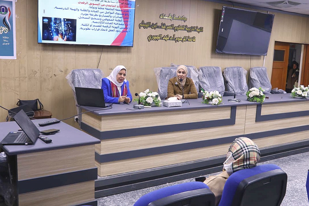 اقامت وحدة شؤون المرأة في كلية التربية للعلوم الصرفة – ابن الهيثم، وبالتعاون مع وحدة التعليم المستمر، دورة تدريبية بعنوان (مهارات القيادة والتسويق الرقمي)، حاضر فيها كل من ا.د. منتهى مطشر عبد الصاحب و ا.د. مي فيصل احمد